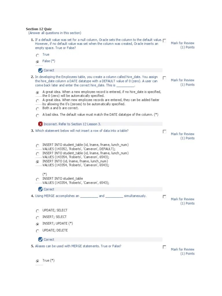 Kunci Jawaban Oracle Ilearning Section 6 - Kuis Database Foundations Midterm Exam Pdf Databases Test Assessment - Data entry webpages, spreadsheets, google and yahoo search engines, sql developer, oracle application express (*) 2.